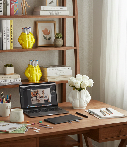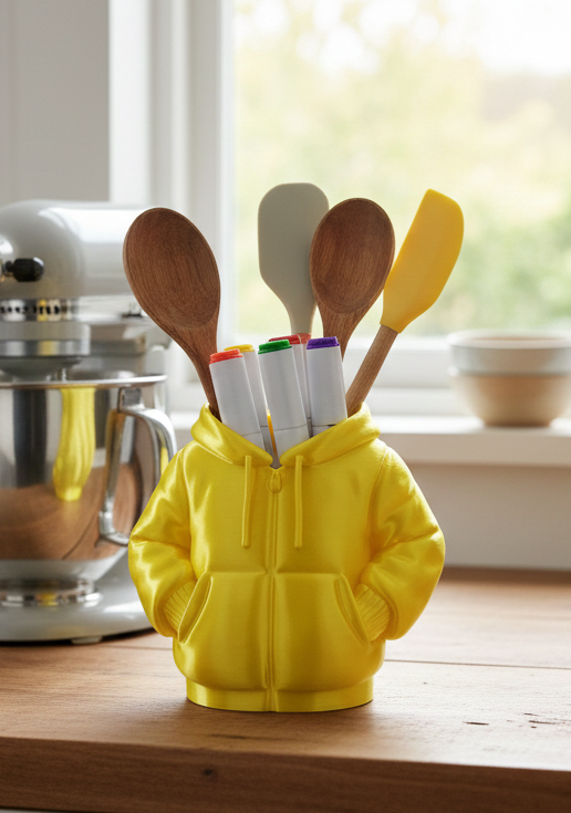 Bloom Hoodie è un portaoggetti decorativo dal design originale, pensato per dare carattere alla tua scrivania o ai tuoi spazi di casa. Ispirato alla forma di una felpa con cappuccio, trasforma un oggetto funzionale in un vero elemento d’arredo. Può essere utilizzato come portapenne, vaso per fiori secchi o artificiali, o semplice complemento decorativo. È ideale per chi ama distinguersi con dettagli unici e curati. Risolve il problema degli spazi anonimi, aggiungendo ordine e personalità.